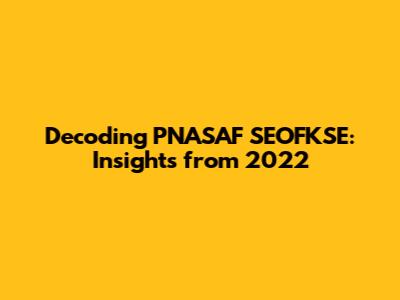 Decoding PNASAF SEOFKSE: Insights From 2022