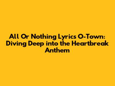 Hey guys! Let's take a trip down memory lane to the early 2000s, shall we? Remember O-Town, the boy band that stole our hearts with their catchy tunes and swoon-worthy looks? Well, one song that always gets stuck in my head is "All or Nothing." It's a classic heartbreak anthem that still resonates with so many of us today. So, let's dive deep into the lyrics, the meaning, and everything that makes this song so unforgettable.